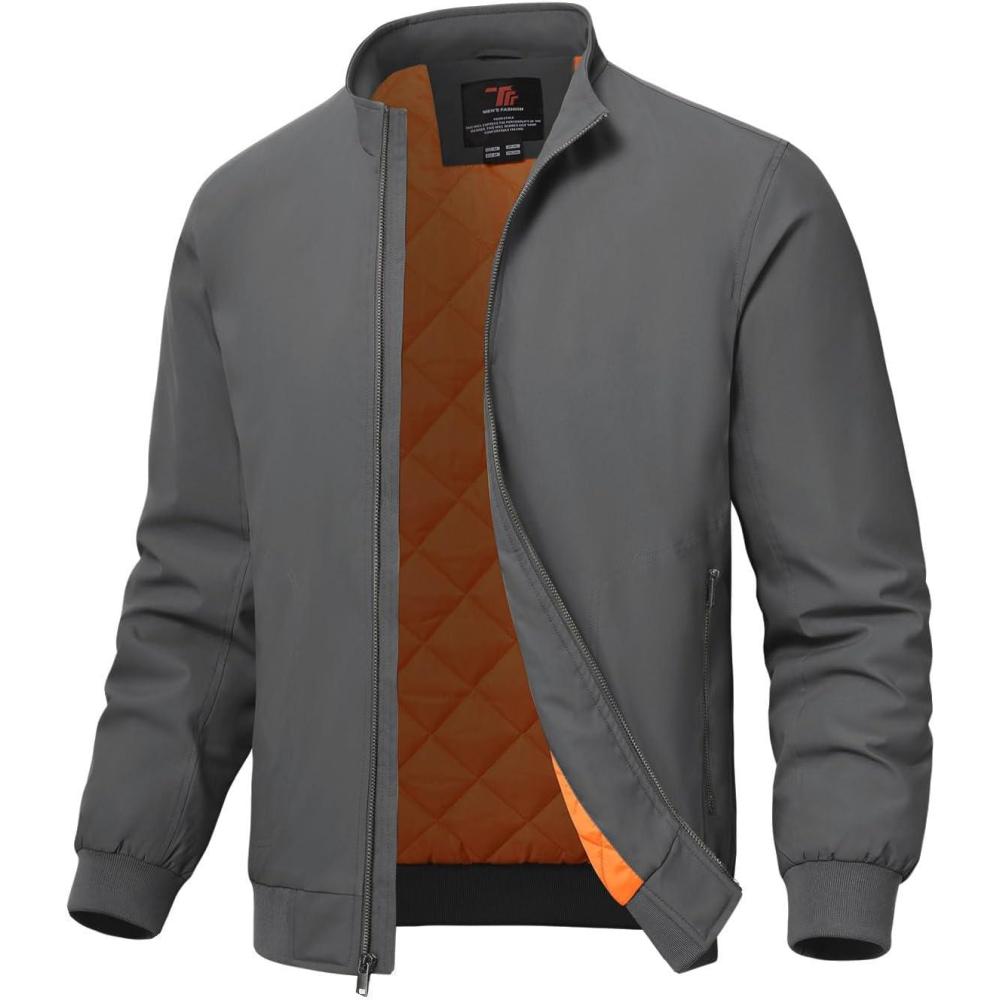 TBMPOY Men’s Winter Lightweight Bomber Jackets Water Resistant Fall Casual Windbreakers Quilted Full Zip Windproof Work Coats(Dark Grey)