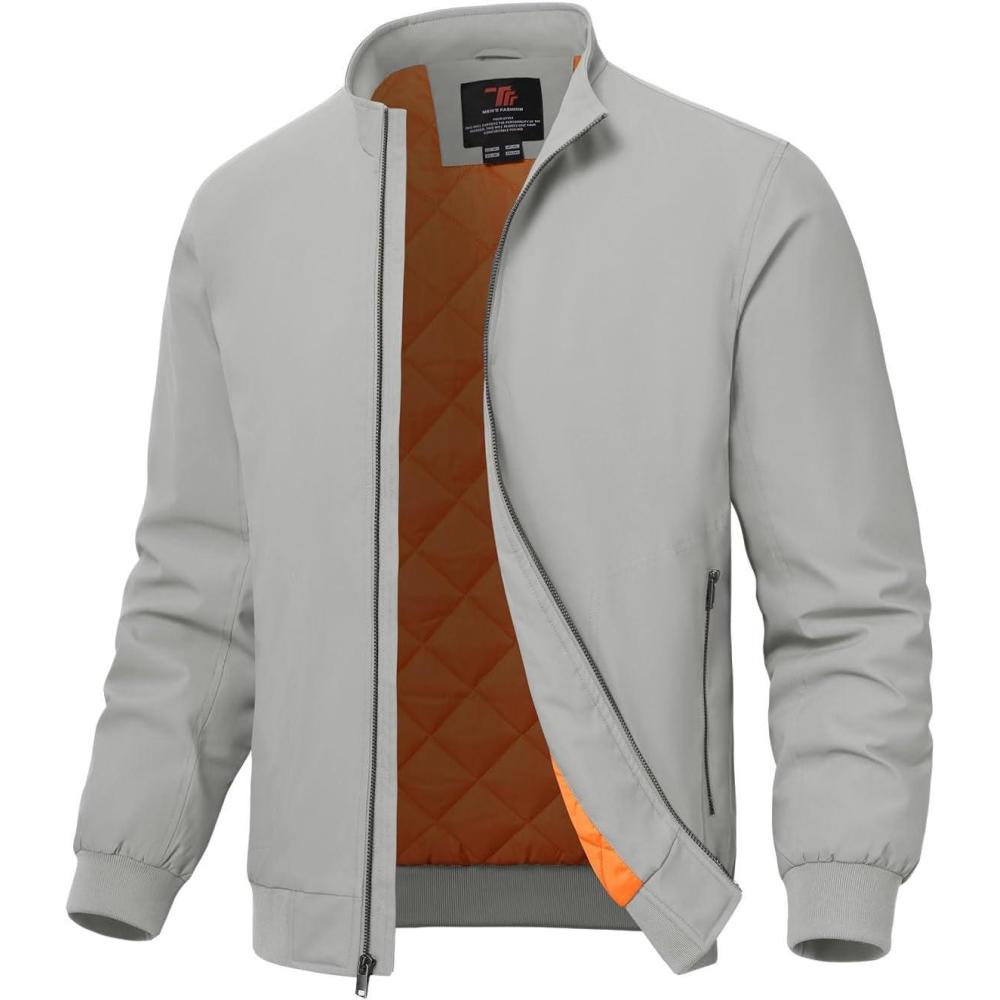 TBMPOY Men’s Winter Lightweight Bomber Jackets Water Resistant Fall Casual Windbreakers Quilted Full Zip Windproof Work Coats(Light Grey)