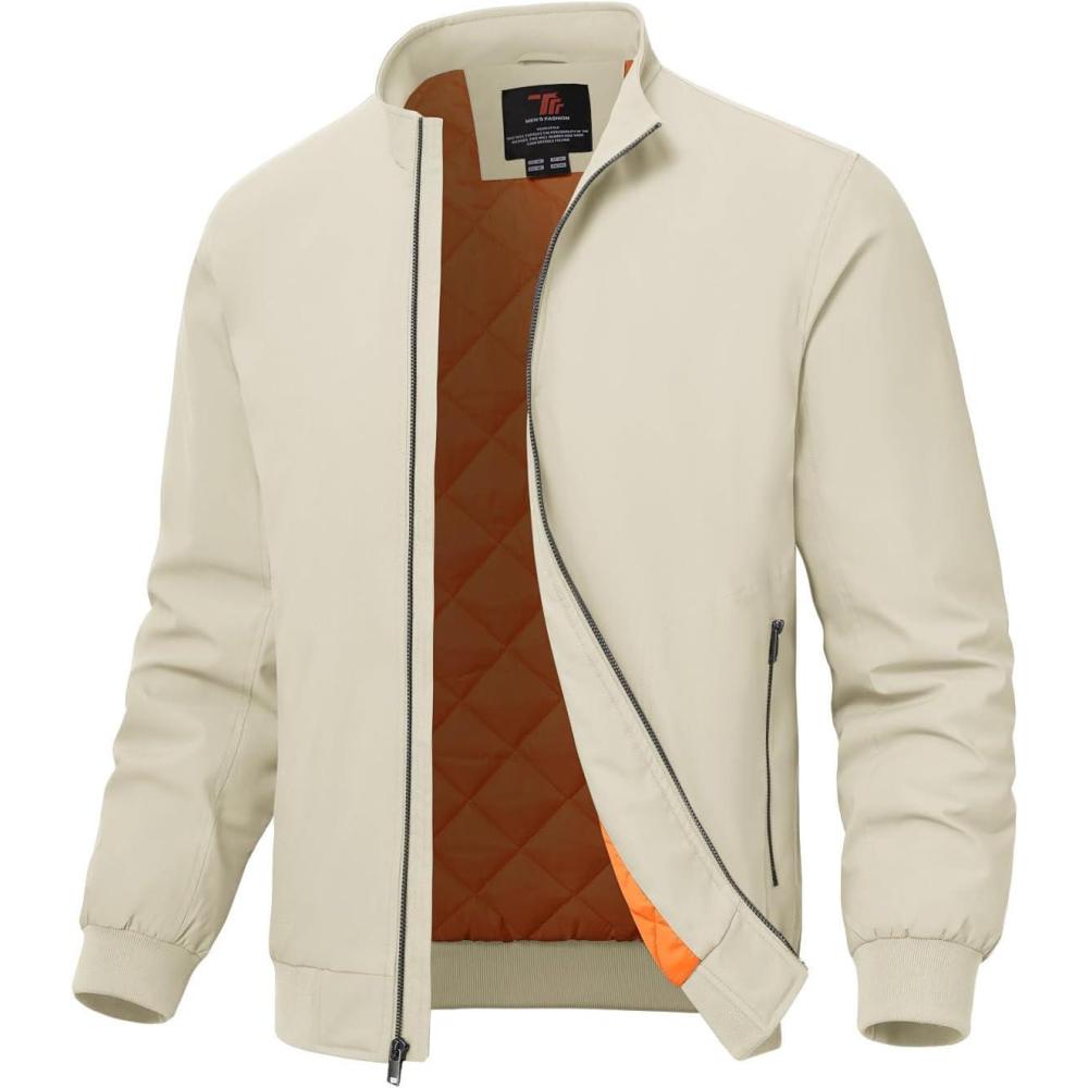 TBMPOY Men’s Winter Lightweight Bomber Jackets Water Resistant Fall Casual Windbreakers Quilted Full Zip Windproof Work Coats(Light Khaki)