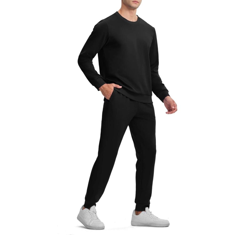 TBMPOY Mens Sweatsuits 2 Piece Set Tracksuits Jogging Outfits Long Sleeve Tops Jogger Pants Sweat Track Suits Casual Athletic(Black)