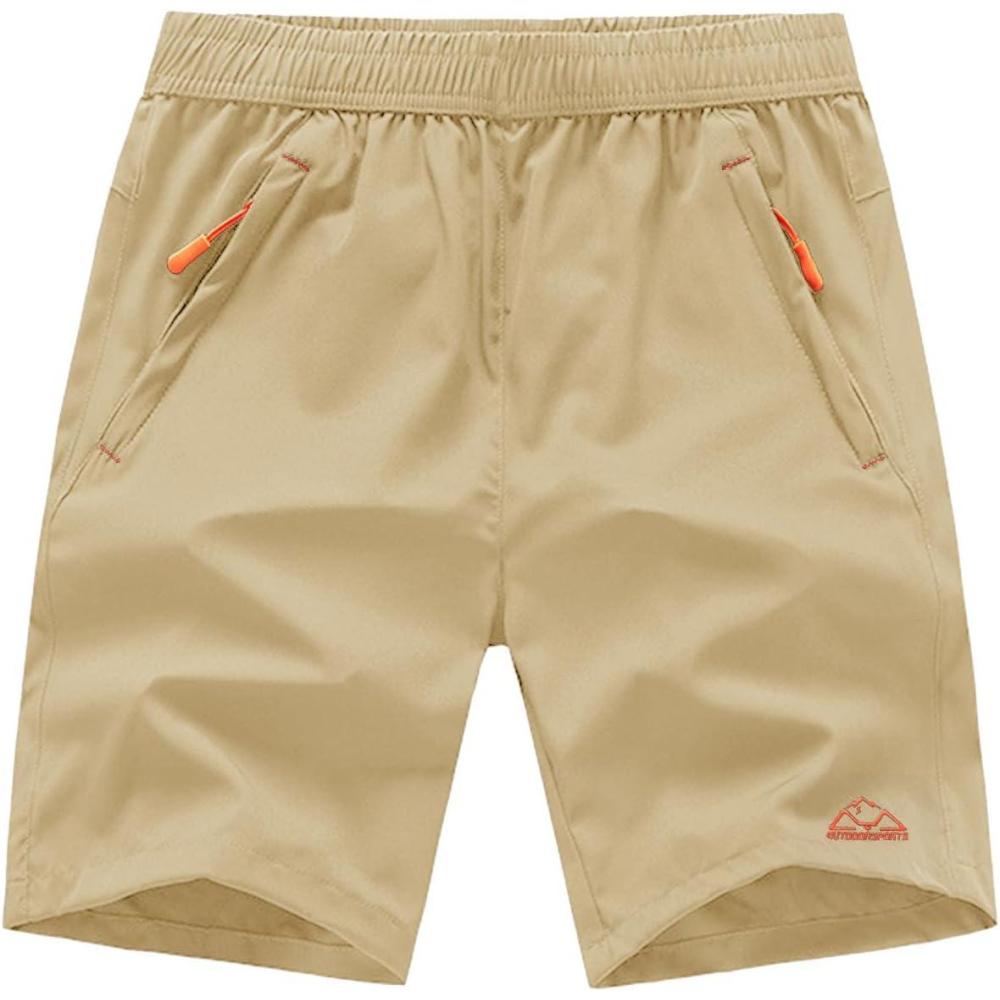 TBMPOY Men’s 7″ Running Hiking Shorts Quick Dry Athletic Gym Outdoor Sports Workout Short 3 Zipper Pockets(A24-light Khaki)