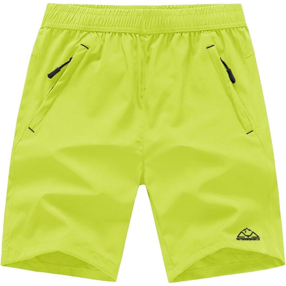 TBMPOY Men’s 7″ Running Hiking Shorts Quick Dry Athletic Gym Outdoor Sports Workout Short 3 Zipper Pockets(A25-fluorescent Green)