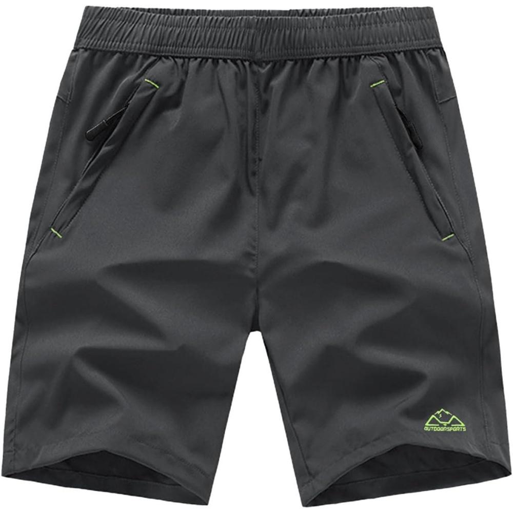 TBMPOY Men’s 7″ Running Hiking Shorts Quick Dry Athletic Gym Outdoor Sports Workout Short 3 Zipper Pockets(A26-dark Grey/Green)
